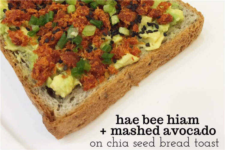 I would highly recommend this hae bee hiam to anyone who loves spicy food and dried prawns. A dollop of this in noodles, rice, porridge and even on bread immediately elevates the taste of the food! Here's a look at my porridge with the yummy hae bee hiam and you tiao (also from JB!) and my yummy toast topped with mashed avocado and hae bee hiam!